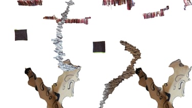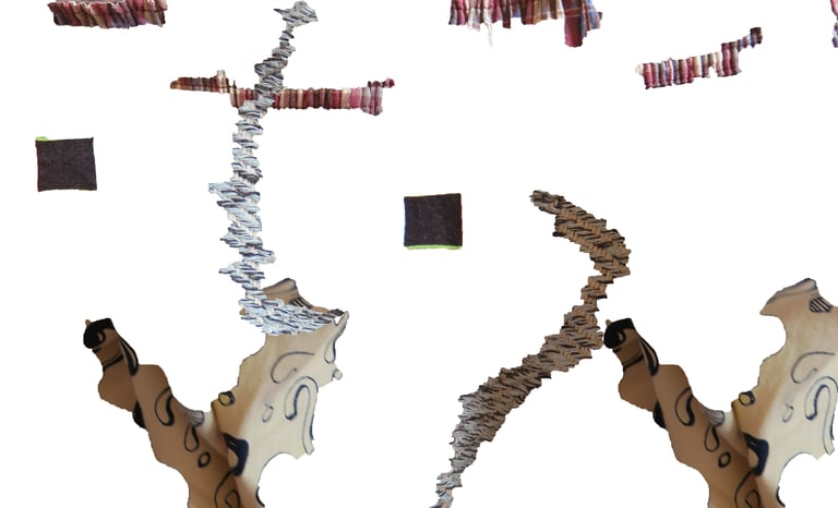 These artworks are based on Anjan Sundaram's recent reporting on climate justice on the environmental frontlines of Mexico, the subject of his TED2024 talk. The works distill the courage, trauma, and inspiration of environmental defense communities in remote, vulnerable, conflict-ridden territories, and represent them visually. The scenes are laden with tension and perception as Anjan conducts his reporting; they are both psychological signposts and scars; the white spaces represent the isolation of the communities and alienation of the artist. The art incorporates elements from Anjan's journalism, such as storytelling, while drawing on the objects of his journalistic process and production, along with his intimate possessions, to create a sense of proximity to the scenes he depicts by placing abstract forms of his body in the artwork.